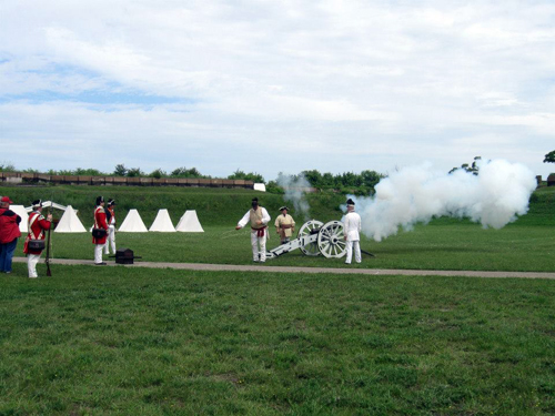Living historian representing French, British and Colonial forces as well a civilians were present. Both infantry and artillery were displayed as well as a fife and drum corps. It was a great display of life in Michigan before our Fort Wayne was built.